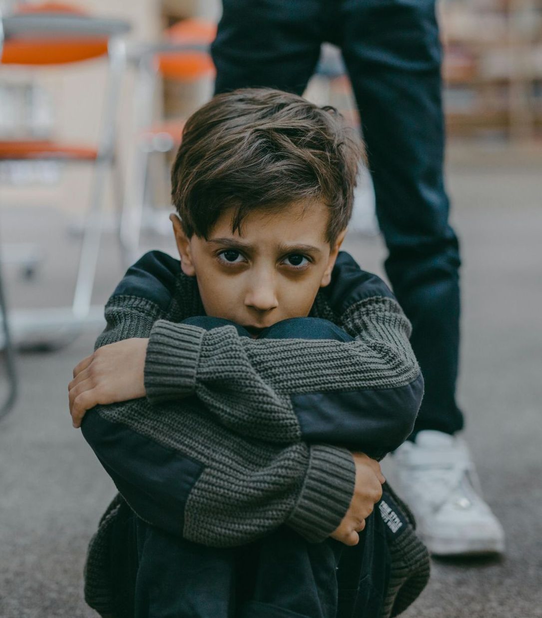 - Avoids eye contact and appears fearful around authorities or support staff.